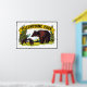 Um poster do Parque Yellowstone vintage com três ursos, uma mãe e dois filhotes.