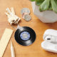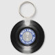 A imagem de um registro de vinil preto e azul personalizado com seu nome especial ou marca, suas próprias letras iniciais e uma citação especial... Sugestão de excelente para não perder suas chaves.