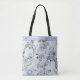 Head to the market in style with this large tote in a dreamy blend of violet, lilac, and spearmint green, creating a fresh and sophisticated palette. The arrangement features delicate watercolor botanicals including lush hydrangeas in soft purple hues, fragrant lilac clusters adding vintage charm, and graceful morning glories with their distinctive trumpet blooms