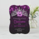 Cartão de convite para Quinceanera roxo e violeta com cristal tiara e um brilho rosa #15. Escolha outras formas e cores. Bonita para o tema de aniversário da princesa lavanda, rosa, ameixa. Adicione o envelope correspondente, devolva etiquetas de endereço e adesivos para completar a aparência.