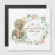 Apresentando uma bela imagem católica tradicional da Bênção Maria, o Coração Imaculado de Maria com a citação da Aparição em Fátima, "No final, meu Coração Imaculado Triunfar-se-á." As flores de pêssego eucalipto adicionam um toque encantador.