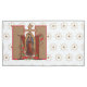 Este é um belo símbolo católico tradicional (a Cruz Marian) da Virgem Abençoada Maria, Nossa Senhora de Guadalupe com rosas abaixo. A Marian Cross é um termo usado para descrever uma representação simbólica da estreita ligação de Mary com a missão redencial de Jesus. A letra "M" abaixo da cruz indica a presença de Mary no pé da cruz em Calvário, A oração de memorização está na parte de trás da fronha.