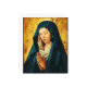O fundo comum e escuro contrasta com a cabeça radiante da Virgem e com a morada branca que a cobre, e as mãos dela são cuidadosamente fechadas.
