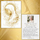 Esta elegante Carta de Oração do Memorial Funeral Católico apresenta uma imagem serena ouro da Virgem Bênçada Maria cercada por um design floral que oferece uma bela homenagem a um ente querido falecido. O reverso é personalizável com uma foto pessoal e uma oração tocante para a alma dos falecidos, invocando a intercessão da Bênção Virgem Maria. Este cartão serve como um guardião duradouro para a família e os amigos, trazendo conforto e esperança através do compaixão de Deus. Ideal para funerais católicos e serviços de memória, estas cartas de oração são uma forma sincera de honrar a vida e a fé de seu amado.