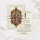 Apresentando uma bela imagem católica tradicional de Nossa Senhora de Guadalupe, Virgem do México, com rosas vermelhas cor-de-rosa e sobrepostas em um quadro de ouro ornamentado. O fundo é um design de renda vintage. Todos os textos e fontes estão em espanhol e podem ser modificados.