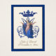 Apresentando uma bela imagem personalizada da Virgem Abençoada Maria sobreposta a um Monograma Marian azul "M" com uma coroa acima. Uma oração está atrás da noiva e do noivo. Todo texto e fontes podem ser modificados.