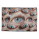 Fundo abstrato psíquico de padrão de olhos distorcido com um olho grande olhando olhos reais com cores azuis salpicam fundo abstrato psicodélico com padrões de olhos distorcidos em cores azuis. Uma experiência surreal! Surreal com um padrão de olhos distorcido em vários tons azuis. olho, fundo, psicodélico, globo ocular, estranho, padrão, muitos, assustador, mulher, textura, decoração, moda, moça, branca, retrô, verde, azul, maquiagem, tecido, moderno