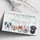 Um encantador lembrete para seus clientes com cachorros doces com bolha e espuma de sabão na cabeça. Mostrando ao cliente como seu doce animal de estimação será mimado e tratado como royalties no seu negócio de aliciamento de animais. Labrador negro, poodle, velho cão-guia inglês, pomeraniano e dalmitiano. Avalível com fundo em diferentes tons de aquarela, e branco comum clássico simples.