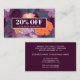 Moderno, mas com um toque retrô, cartão de desconto ou cupom de networking feminino apresentando imagem digital de flores inspiradas no estilo retrô numa paleta de cores burgundy escuro vibrante, laranja e roxo. Ótimo para beleza, moda, pequenos negócios, proprietários de lojas de roupas e profissionais de eventos.