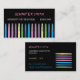 Cartões de visitas pretas duplamente laterais com o rabisco de canetas de tinta arco-íris. Personalize-os com suas informações usando o modelo. Eles foram criados especialmente para professores, professores substitutos, assessores de professores, orientadores ou educadores. Você também pode achá-los em laranja claro, verde-claro ou branco. © ArianeC Ilustrações — Todos os direitos reservados