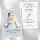 Um cartão de guarnição simples e elegante para o batismo de um bebê, apresentando uma doce ilustração de um pequeno no seu vestido batismo num fundo azul macio. A ilustração é totalmente personalizável e pode ser facilmente substituída por uma foto de sua escolha. Estas cartas fazem lindos favores batismos e uma memória sincera para os vossos convidados.