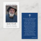 Simples cartão de oração funerária. Adicione sua foto favorita, seu script e a tipografia clássica é usada. Na parte traseira do cartão está a oração que pode ser personalizada sobre um fundo azul.