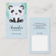 Cartão de mamãe bonito e moderno com seu nome, nome da criança e informações de contato. Ilustração de um bebê panda debaixo de um bambu. Todos os textos são facilmente editáveis online. Este cartão é muito útil para dar a outros pais, professores, eventos escolares, vizinhos, babás, etc. Ele tem as suas informações de contato pessoais juntamente com o nome do seu filho para que o pessoas possa facilmente contactá-lo por razões de emergência ou para configurar uma data de jogo!