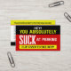 Um conjunto de 100 destes cartões constituiria um presente incrível para a "patrulha comunitária" dar como bilhetes de estacionamento! Pessoas que são ruins no estacionamento precisam saber que seu comportamento malvado foi notado, e pessoas acham que são idiotas, certo? Você pode personalizar facilmente essas placas e adicionar/modificar 'motivos' personalizados na parte traseira que deseja. Ou deixá-los como está. Algumas pessoas chupam no estacionamento, e precisam das suas cartas de chamada colocadas no para-brisas!
