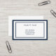 Este cartão de chamadas apresenta um design clássico simples com bordas em branco e azul-marinho.