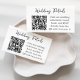 Design moderno e minimalista de cartão de detalhes de casamento em preto e branco que apresenta seu código QR personalizado para um site de casamento para que os convidados possam responder, encontrar informações de viagem e hotel, links de lista de presentes e informações do evento. O texto preto e o fundo branco podem ser atualizados para combinar com a paleta de cores do seu casamento.