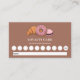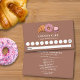 Um Cartão de Lealdade com uma ilustração de um croissant, uma rosquinha e um macarão sobre um fundo castanho-claro. Você pode distribuí-los aos seus clientes para criar lealdade. Estes vêm com 9 círculos vazios para um décimo de graça. Informações totalmente personalizáveis, incluindo horas de abertura, estão disponíveis no verso!