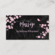 Uma cereja rosada clássica floresce em um fundo preto. O mármore negro dá ao clássico design um toque moderno. Personalize-o em um roteiro elegante. Adequação para maquiadores, spa, paisagismo, planejadores de casamento, planejadores de eventos, cosmetólogos, salão de beleza... Cartão de visita correspondente disponível.