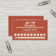 Um Cartão de Lealdade em tons castanhos vermelhos para pizzaria, caminhão de comida, comida de entrega de casa ou chefe de cozinhar, e ilustrado com uma fatia de pizza, um chapéu de chef e um prédio. Você pode distribuí-los aos seus clientes para criar lealdade. Estes vêm com 9 círculos vazios para um décimo de graça.