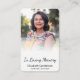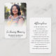 Honre a memória de uma pessoa amada com este cartão memorial elegante, pensadamente concebido para partilhar uma foto apreciada e uma memória sincera. A frente apresenta o espaço para um retrato junto com o nome e as datas de vida, criando uma manutenção de eterno para a família e os amigos. O reverso oferece espaço para uma oração, poema ou tributo pessoal, permitindo que você compartilhe palavras de conforto e celebração da vida. Perfeito para serviços funerários, reuniões memoriais, ou como um guardião duradouro. Este cartão fornece uma maneira significativa de preservar memórias especiais e honrar uma vida bem vivida.