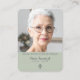 Honre um ente querido com este cartão de oração de cruz simples e elegante moderno. Com um design contemporâneo minimalista com espaço para uma foto e nome, incluindo um versículo de oração significativo em um fundo verde musgo. Esta lembrança memorial é perfeita para funerais, celebrações de serviços de vida e reuniões de recordação. Um cartão de condolências atemporal que oferece conforto em tempos de luto. Você pode encontrar mais cartões de oração semelhantes a este com diferentes opções de cores na Coleção de Cartões de Oração de Cruz Moderna Elegante na loja The Gathering Designs.