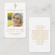 Um fundo branco, uma cruz dourada falsa e espaço para a sua foto. Personalize e adicione nome, datas e texto e oração.