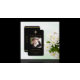 Um fundo preto, uma cruz dourada falsa e espaço para a sua foto. Personalize e adicione nome, datas e texto e oração.