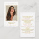 Cartão de visita Dimensões: 3,5" x 2,0" Este simples cartão de oração memorial pode ser dado como guardiã de uma Celebração da Vida ou serviço funerário ou enviado como homenagem especial a quem não pôde participar. Personalize este cartão com uma foto favorita, o nome do seu amado, datas e a sua escolha de oração ou poema. Fácil de personalizar.