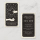 Este cartão de visita apresenta um design de estilo de placa de tarot em uma paleta de cores preta e creme. A ilustração mostra uma mão segurando um coração. O fundo tem uma lua e estrelas cintilantes. Isso seria perfeito para qualquer artista maquiador, salão, cabeleireiro ou esteticista que prefere um cartão de referência estilo alternativo e quer tornar seu cartão de visita memorável. Este cartão oferece ao seu cliente um desconto percentual no próximo compromisso, se ele se referir a um amigo.