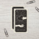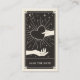 Esta opção Save The Date Card apresenta um design de estilo de placa de tarot em uma paleta de cores preta e creme. A ilustração mostra uma mão segurando um coração. O fundo tem uma lua e estrelas cintilantes. Isso seria perfeito para qualquer um que tivesse um casamento temático de Halloween ou Spooky com um tema de palmica ou fortuna.