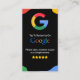 Cartão de visita do Google Review com link de código QR e seu nome de empresa, número de telefone, site, email e identificador social com fundo preto. Personalize uma Cartão de visita para ser uma oportunidade única e inteligente para que você peça aos seus clientes que deixem uma revisão de cinco estrelas para o seu compro no Google, bem como promova a sua presença online na empresa.