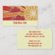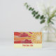 Um sol dourado e laranja se põe e o vento sopra nuvens vermelhas e rosa através do céu. Modelo de cartão de negócios com um design personalizável dourado, laranja, vermelho, rosa e branco para você personalizar com seu próprio texto, imagens e ideias. Imagem criada de um lápis de cor original e desenho de tinta metálica.