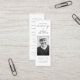 Crie um belo e significativo tributo com nosso Simple Funeral Memorial Prayer Photo Bookmark Card. Este marcador personalizável apresenta um design simples e minimalista, fazer que seja uma escolha perfeita para qualquer memorial ou serviço funerário. A inclusão de uma foto permite personalizar o marcador com uma lembrança carinhosa do seu amado. A carta também inclui uma oração corajosa, que proporciona conforto e consolo durante este período difícil. Com as palavras "In Loving Memory" mostradas elegantemente, este marcador serve como uma emocionante salvaguarda e lembrete do impacto persistente que seu ente querido teve na sua vida e na vida de outros. Compartilhe esses marcadores com a família e os amigos como um gesto atencioso ou distribua-os como um favor memorial durante o serviço funerário. Escolha nosso Cartão de Visita Fotográfica Simples do Memorial Orador Funeral para homenagear a memória de seu ente querido e oferecer um tributo duradouro que será apreciado por todos.