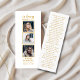 Dimensões de cartão de visita: 3,0" x 1,0". Personalize este Dourado Livro de Orações Funerárias de Simpatia Moderna. Design apresenta um design branco moderno e uma colagem de fotos única de 3 fotos. Fácil de personalizar fotos e texto.