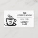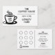 Cartão de fidelidade minimalista branco personalizável para cafés e compras de café, com uma xícara de café recém-fabricada com os "Obrigados A'Latte", detalhes comerciais com uma área para carimbar o cartão com cada compra.