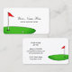 Um clube de golfe comprou modelo de cartão de negócios da empresa. Design de cartões de visita personalizados com o logotipo verde. Design elegante com tipografia de classe para nome e slogan da empresa. Fundo de cor branco ou personalizado. Cartões de visitas profissionais para profissões relacionadas com empregos no esporte de golfe. Excelente para golfista, treinador, instrutor, treinador, professor, proprietário do compro, mestre do cadastro, etc. Disponível em diferentes tamanhos, espessura de papel e forma recortada de canto redondo. Altere a quantidade para obter o preço do pacote de massa barato. Cartões personalizados para clubes, compro, loja, faixa de condução, centro de treinamento, aluguel de carrinho e muito mais.