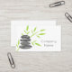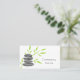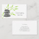Zen pebble stone stacking modelo de cartão de negócios para relaxar spa, terapia de massagem, instrutor de ioga, salão de beleza, classes de meditação, atenção, centro de saúde, centro de bem-estar, negócio espiritual, compro, companhia etc. Tipografia moderna elegante com rochas empilhadas e design de arte do vetor de planta floral de bambu. Cinzas e cores verdes. Cor de fundo personalizável. Simples design de limpeza inspirado na natureza.