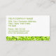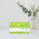 Cartão de visita com um design moderno com estrelas dispersas sobre um fundo estilizado do padrão de "aparência sequencial" em tons de verde limão, e texto verde sobre um fundo branco. Observe que esta é uma imagem de arte digital impressa, ela não brilha ou contém cinzas ou sequências reais.