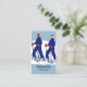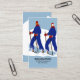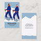 Uma imagem estilizada de duas pessoas esquiando contra um pano de fundo azul da montanha. Você pode personalizar este Modelo de cartão de negócios de instrutor de esqui projetado profissionalmente para qualquer indivíduo ou empresa.