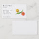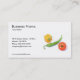 Modelo de cartão de negócios inteiramente customizável com uma foto profissional de um tomate e de duas pimentas.