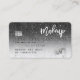 Um elegante cartão de visita do estilo de cartão de crédito de na moda e artista de maquiagem, moderno, com uma tipografia de fontes de script moderna num gradiente cintilante negro e brilhante plano de fundo de mármore branco. todo o texto é personalizável, adicione suas mídias sociais. Apresentando falso stripe de prata. Adicione seu logotipo, seu monograma e código QR.