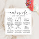 Cartões modernos de cuidados Cakesicles com letra de escrita elegante e ícones de cuidado. Este mínimo de cartões de instruções de armazenamento e tratamento de panelas em preto e branco inclui as informações mais importantes sobre o tratamento de lollipops de bolo, uma nota de agradecimento e espaço para o logotipo de sua padaria e detalhes de contato. A adição perfeita ao seu design de embalagem de panificação de panificação.