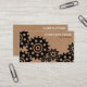 Um modelo de cartão de negócios com um arranjo de engrenagens. Nome da empresa e tipo de negócio na frente, com nome e outros contatos no verso. O design pode ser personalizado de várias maneiras. Esta versão tem um plano de fundo de textura de imagem.