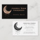 Um rosa de design de lua em lua em um fundo preto. Essa elegante cartão de visita seria perfeita para um negócio metafísico como psíquico, tarista ou técnico espiritual. Personalize com suas informações comerciais.
