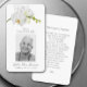 As orquídeas brancas elegantes, uma foto e os detalhes de sua celebração da vida na frente e a oração do Senhor, ou qualquer oração nas costas, apenas digite sua redação. Bonita a ser incluída em um funeral, num serviço de memórias, no aniversário da morte ou em notas de agradecimento. CORRESPONDENTE a itens na nossa coleção.