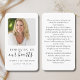 Este simples cartão de oração memorial pode ser dado como guardião numa Celebração da Vida ou num serviço funerário ou enviado como homenagem especial aos que não puderam estar presentes. Personalize este cartão com uma foto favorita e sua escolha de oração ou poema. Fácil de personalizar. Nossas sentidas condolências pela sua perda.