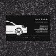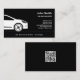 Um simples cartão de visita preto para vendas de automóveis, motorista de carro, táxi, transporte, reparo de carros, lavagem de carros etc. Ele vem com contato de cheio, lista de serviços e um código QR na parte traseira.
