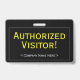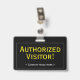 Este design de crachá profissional apresenta a mensagem "Visitante autorizado!" e um nome personalizável da empresa ou outra mensagem personalizada. Ele também apresenta uma borda de linha de solteiro. Um crachá como este poderia ser usado para mostrar que alguém em uma empresa ou no local de trabalho é um convidado ou visitante autorizado. [~Z0000307]