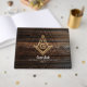Um livro de hóspedes mônico de madeira rústico para todas as reuniões ou celebrações regulares da sua casa, como a Instalação Anual de Oficiais. A design deste livro de hóspedes personalizado freemason apresenta uma praça rústica de ouro e símbolo de bússola sobre uma madeira rústica castanha escura com pistas de azul. Mais opções de cores e variedades de logotipos quadrados e compósitos disponíveis. Adicione facilmente as suas próprias informações de texto neste modelo personalizado. Categoria: livro de hóspedes quadrado e bússola; livros de hóspedes masônicos de madeira falsos. Cor: lenha rústica escura e tema ouro.