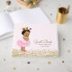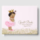 Livro convidado, cor-de-rosa e chá de fraldas-de-ouro, com uma adorável princesa africana-americana vestindo um tutu de bailarina rosa bonito e uma coroa dourada com uma corda de pérolas num lindo fundo rosa e dourado. Você pode personalizar facilmente este bonito livro de convidados de chás de fraldas simplesmente adicionando seu texto. Você também pode alterar a cor de fundo.